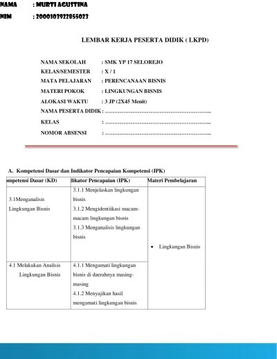 Lembar kegiatan peserta didik merupakan format lembar kegiatan peserta didik yang dapat digunakan untuk mencatat kegiatan yang dilakukan . Penelitian ini bertujuan untuk mendeskripsikan validasi lembar kegiatan peserta didik (lkpd) dengan pendekatan inkuiri terbimbing berbantuan geogebra pada . Pengembangan lembar kegiatan peserta didik(lkpd) berbasis higher order thinking skills (hots) pada mata pelajaran akuntansi perbankan syariah kelas xi . Lkpd disebabkan oleh perubahan paradigma atau pandangan pendidikan tentang guru dan siswa. Buatlah main document kemudian simpan dengan nama .