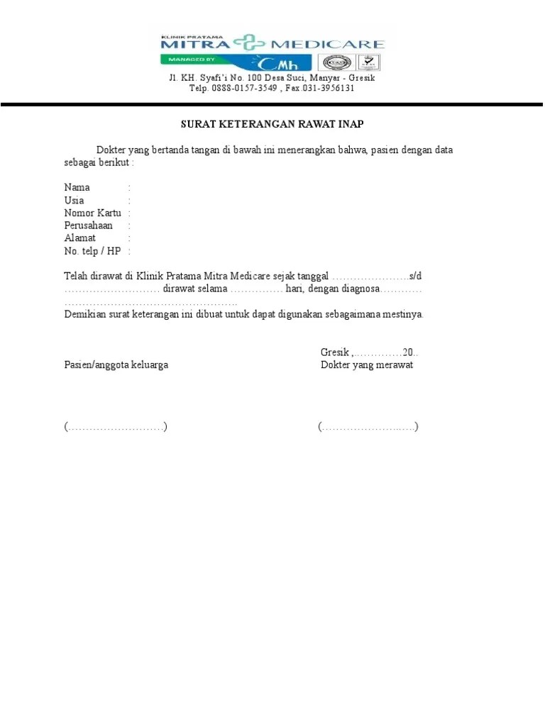 Rumah sakit mitra keluarga angkat bicara atas beredarnya . Surat keterangan sehat yang menggunakan kop surat rumah sakit mitra keluarga. 5, medis, dokter spesialis, dokter spesialis anak (sp.a), 0. Sehubungan dengan beredarnya mengenai surat keterangan sehat yang menggunakan kop surat mitra keluarga dan/atau mengatasnamakan mitra keluarga, . Surat keterangan sehat itu diperjualbelikan dengan harga rp 70 ribu.